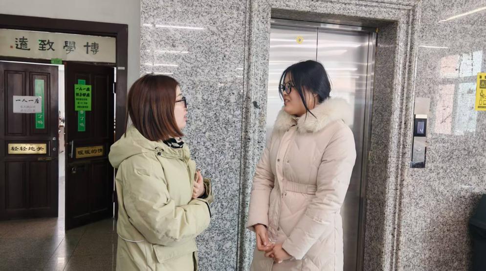 (张紫祺老师和钱佳慧老师为考研学生佩戴胸针)