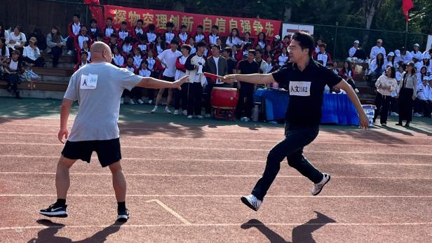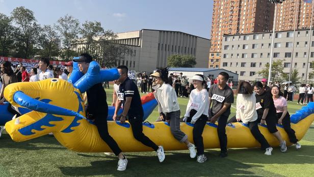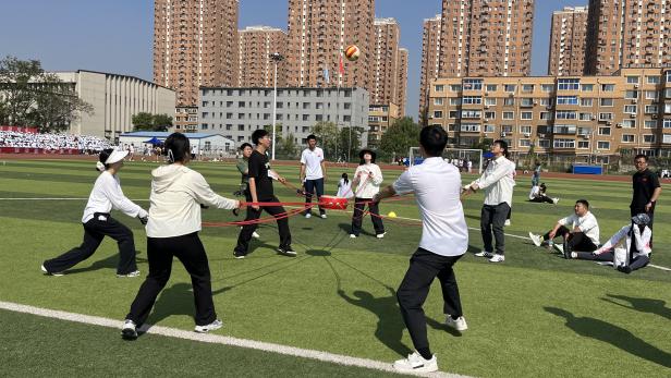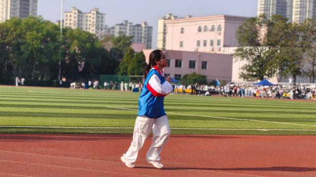 本次运动会上,老师们化身全情投入的参与者,为“育人者亦自强”写下生动注脚。田径赛道上,教师长跑成为暖阳般的风景,坚定的步伐与阵阵助威交织;趣味活动区同样欢腾,“毛毛虫”竞速、“鼓舞人心”等项目演绎着“独行快,众行远”的智慧,亲子环节更添家的温度。整场活动不仅是力量的角逐,更是智慧与情感的升华。老师们在协作中感受集体脉搏,在互动中凝聚情谊,汇聚成这个秋日里最温暖的光。