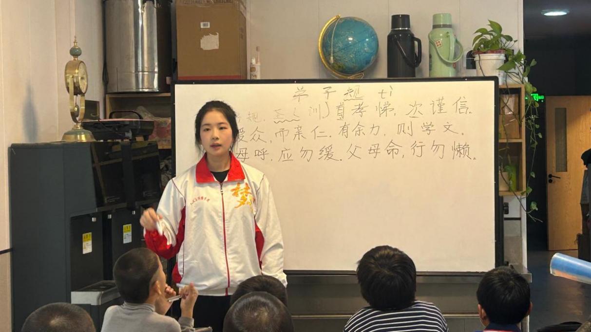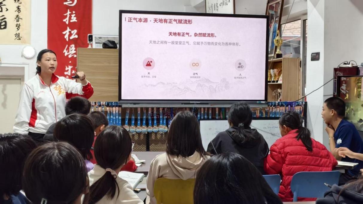 本次活动依据梦想之家孩子们的年龄分组:大孩子组聚焦《正气歌》,通过讲解“天地有正气”等经典名句,将家国情怀与坚韧品格的力量娓娓道来;小孩子组以《弟子规》为核心,用组词接龙、趣味问答等生动形式,让“孝悌友爱”“谨信待人”的道理在互动中扎根心底。志愿者提前备好经典选段卡片,课堂上引导孩子们互动交流;课后还带领大家配乐朗读、抄录原文,在反复吟诵与书写中,让经典韵味慢慢浸润成长。