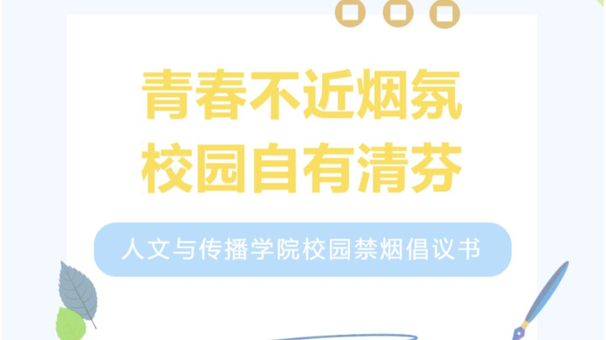 3月25日,学院面向全体师生发布《人文与传播学院校园禁烟倡议书》,号召大家从自身做起,自觉遵守禁烟规定,争做“无烟校园”的践行者与监督员,以实际行动守护清朗校园。